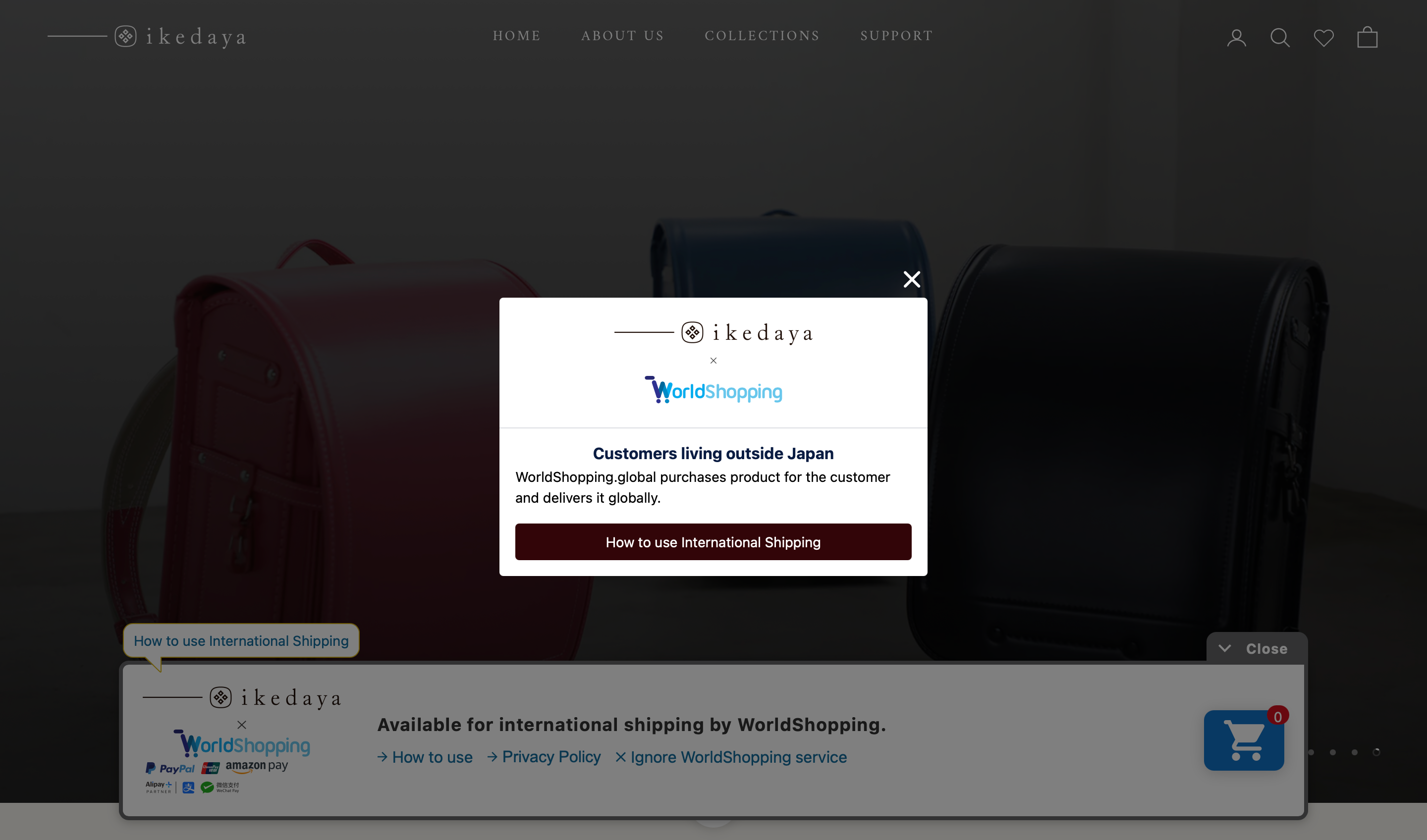 1.When you access from overseas, the “World Shopping Cart” will be displayed automatically.