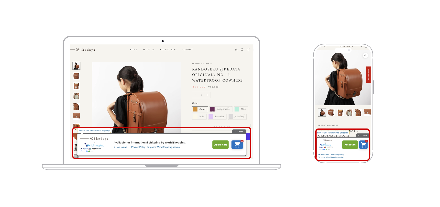 When the WorldShopping cart banner appears at the bottom of the product page, click “Add to cart” to go to the next screen.